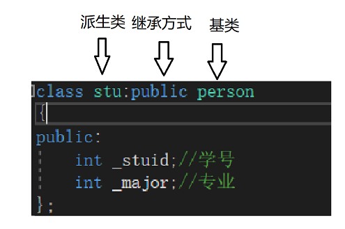 如果使用关键字class,默认继承方式是private,使用struct是public,不过最好显式写出继承方式。
