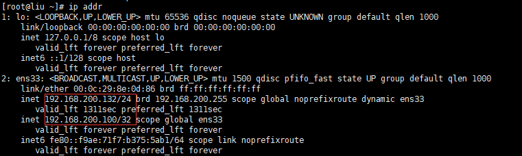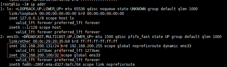 可以看到,这里有本机自己的ip,还有一个是keepalived虚拟出来的ip,两个ip都可以访问到这台服务器。