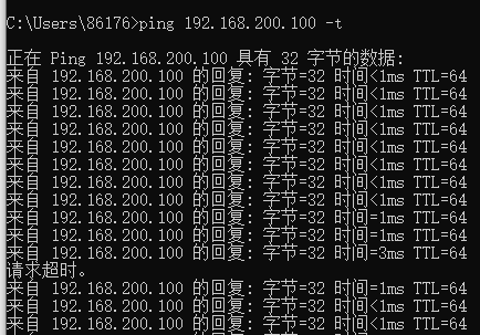 就发现这台服务器没有持有keepalived虚拟的ip,这个时候使用主机(客户端)ping这两台虚拟机(服务器),然后ping到一半关闭持有虚拟ip的那台服务器(模拟挂掉)。