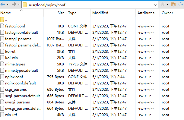 其中较为核心的目录是存放配置文件的目录conf,静态资源网页目录html以及启动nginx的目录sbin
