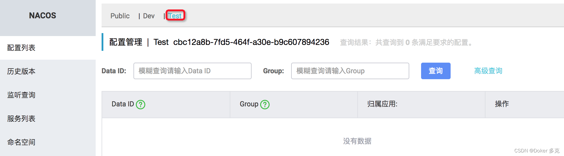 Nacos支持基于Namespace和Group的配置分组管理,以便用户更灵活的根据自己的需要按照环境或者应用、模块等分组管理微服务以及Spring的大量配置,在配置管理中主要提供了配置历史版本、回滚、订阅者查询等核心管理能力