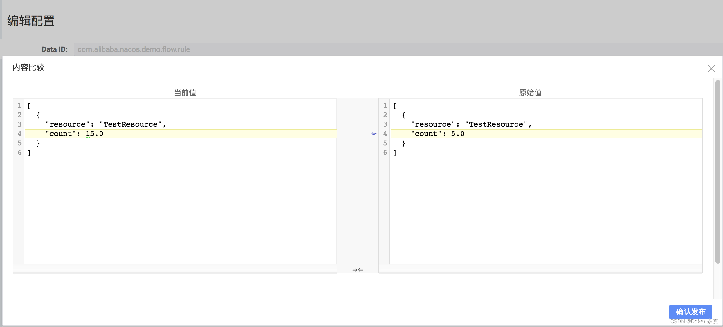Nacos支持编辑DIFF能力,帮助用户校验修改内容,降低改错带来的风险。