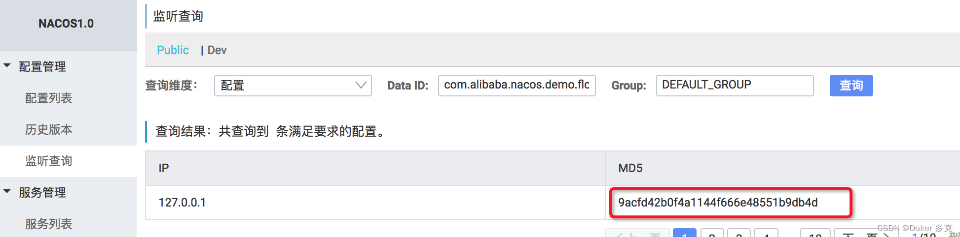 Nacos提供配置订阅者即监听者查询能力,同时提供客户端当前配置的MD5校验值,以便帮助用户更好的检查配置变更是否推送到 Client 端。