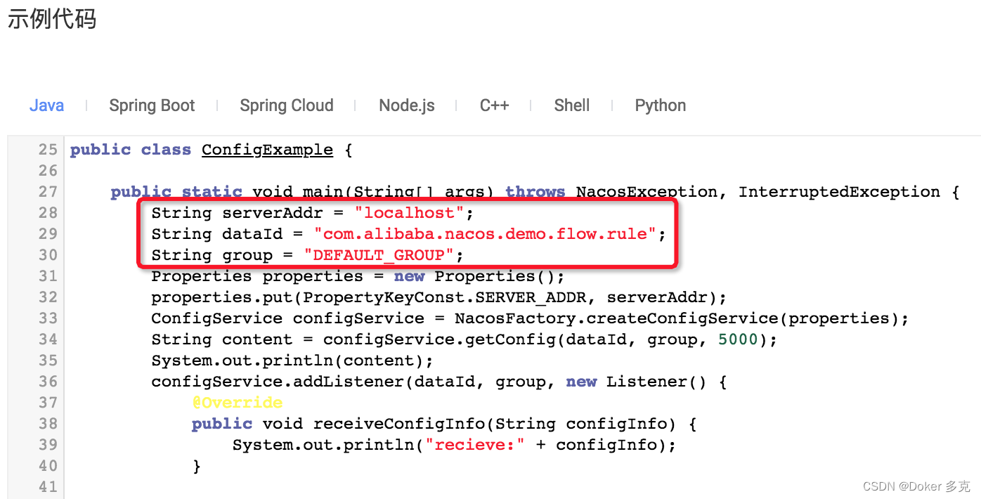 Nacos提供示例代码能力,能够让新手快速使用客户端编程消费该配置,大幅降低新手使用门槛。