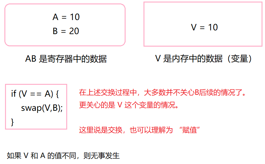 相当于通过一个原子的操作,同时完成 “读取内存,比较是否相等,修改内存” 这三个步骤。