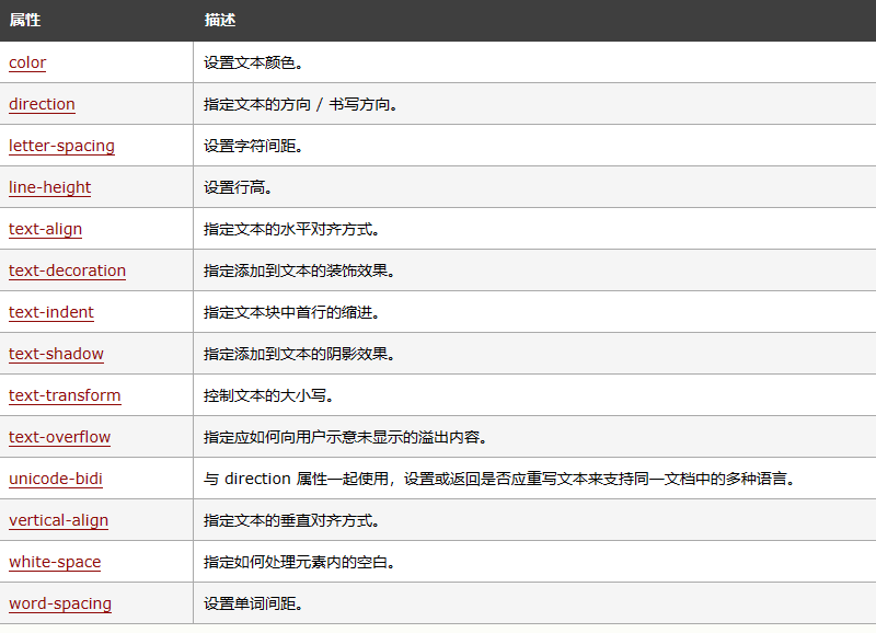 扩展:所有css文本属性