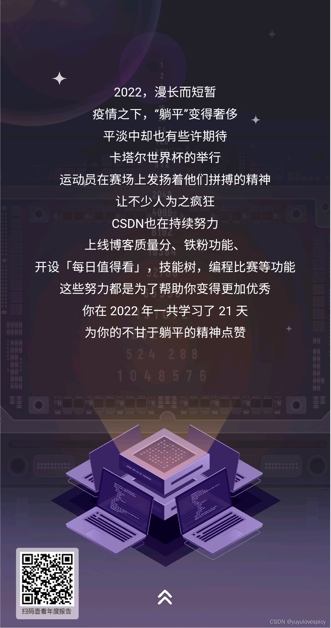 今天是2022年12月31日(当然文章发出应该是2023年1月啦,因为我阳了,/(ㄒoㄒ)/~~),原来时间过得这么快,作为中国地质带专的一名普通计算机学牲,也是趁着跨年之际,写一篇属于自己的年末总结!