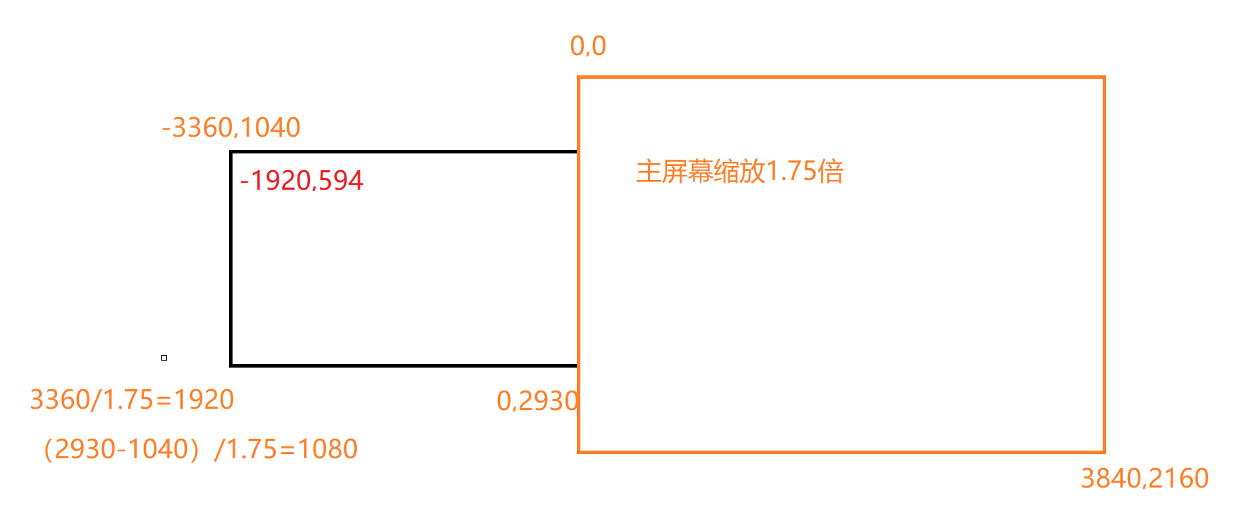 int record_desktop_duplication::get_dst_adapter(IDXGIAdapter ** adapter)如果主屏幕有缩放,就需要计算出相对于1920*1080的位置,拿我的屏幕举例: