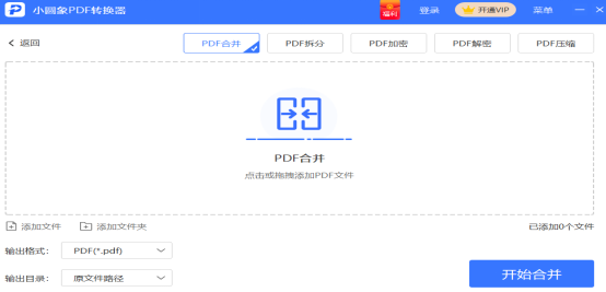 第一步:首先打开小圆象PDF转换器,然后在主页点击PDF合并/拆分的选项。