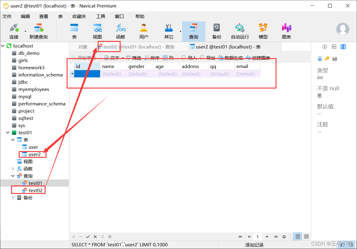 create database test01; -- 创建数据库