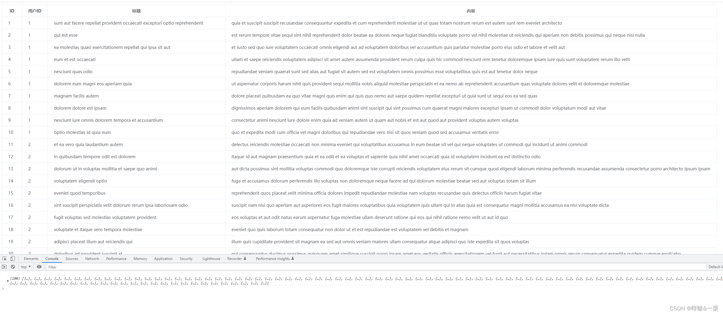 实现效果如下,这里用的是 jsonplaceholder提供的接口。