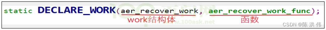 你得先写出一个函数,然后用这个函数填充一个 work 结构体。比如: