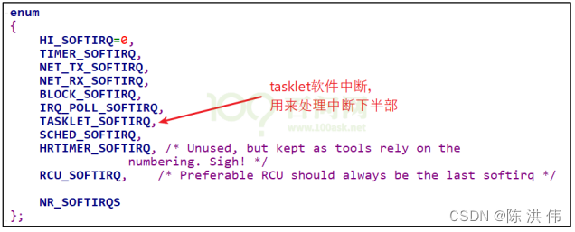 后面讲到的中断下半部 tasklet 就是使用软件中断实现的。