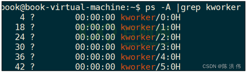 这个内核线程是系统帮我们创建的,一般是 kworker 线程,内核中有很多这
