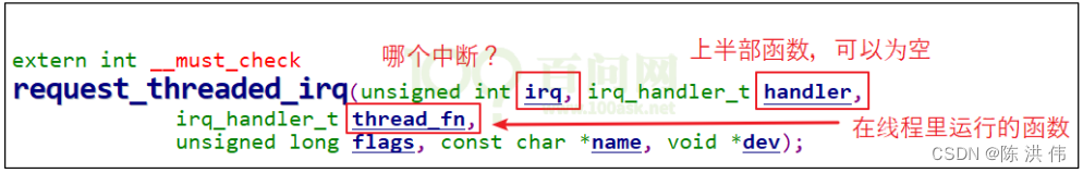 你可以只提供 thread_fn,系统会为这个函数创建一个内核线程。发生中断时,内核线程就会执行这个函数。