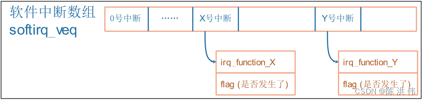 Linux 系统把中断的意义扩展了,对于按键中断等硬件产生的中断,称之为“硬件中断”(hard irq)。每个硬件中断都有对应的处理函数,比如按键中断、网卡中断的处理函数肯定不一样。