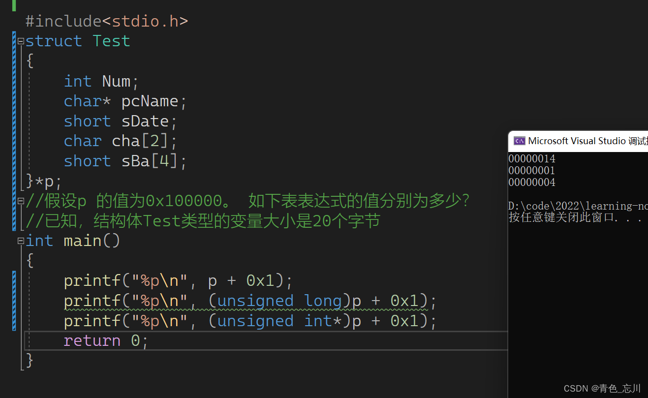 结果为0x00100014然后是将结构体指针强制类型转化为unsigned long类型,这样其实就转化为了普通的正数相加