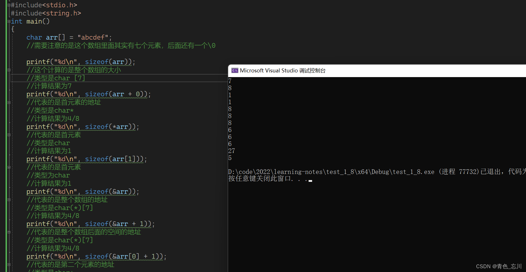1.sizeof(数组名),数组名代表的是整个数组,计算的是整个数组的大小