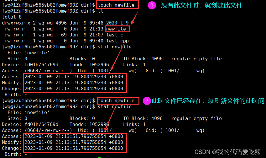 功能:touch 【文件名】 新建一个文件,加上参数可以更改文件或者目录的存取时间和更改时间,如果 touch 【文件名】 如果文件已经存在就可以刷新文件的时间。