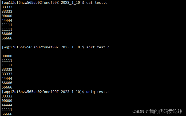 1.uniq 【文件】—— 相同的相邻行只保留一行