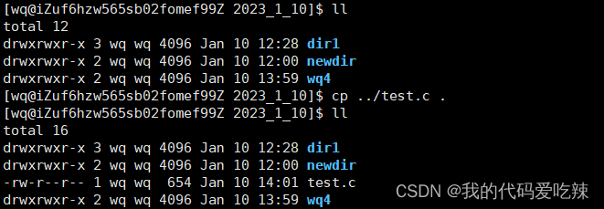 说明: cp指令用于复制文件或目录,如同时指定两个以上的文件或目录,且最后的目的地是一个已经存在的目录,则它会把前面指定的所有文件或目录复制到此目录中。若同时指定多个文件或目录,而最后的目的地并非一个已存在的目录,则会出现错误信息