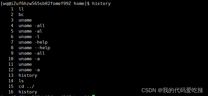 功能:查看历史输入命令