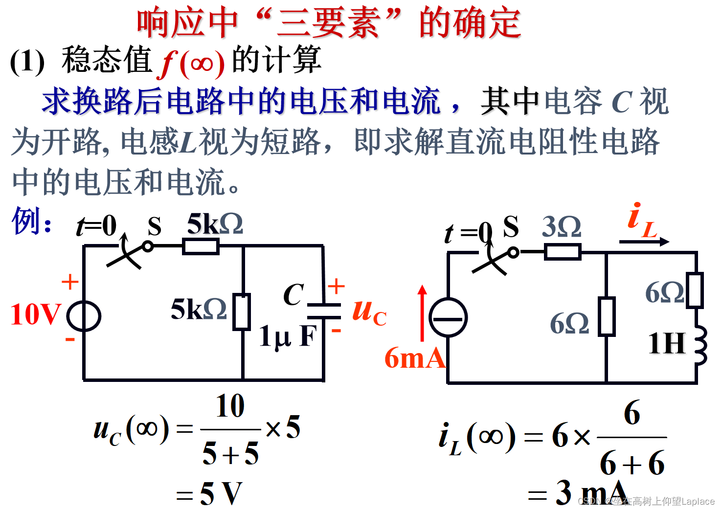 3. 掌握换路定则及初始值的求法;