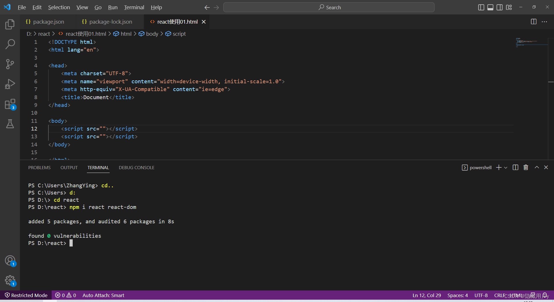 运行第一个程序就花费我好久,显示版本问题,没有最新的react18.0.2的教学视频,为了更快上手我降低了版本,之后端口拒绝访问,打开地址一直转圈……