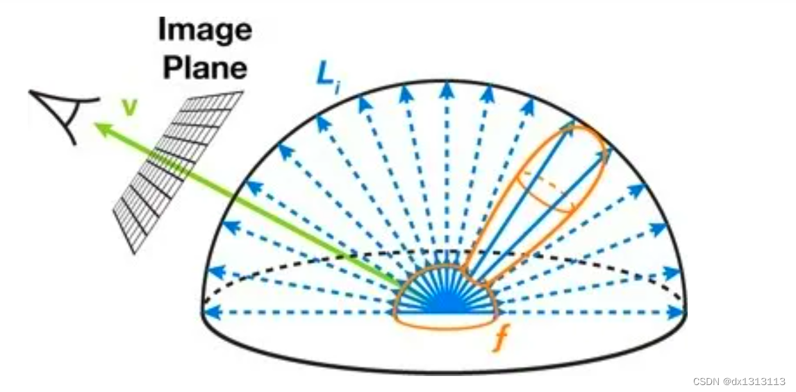 ,每个入射方向的贡献,必须将他们在半球上相加: