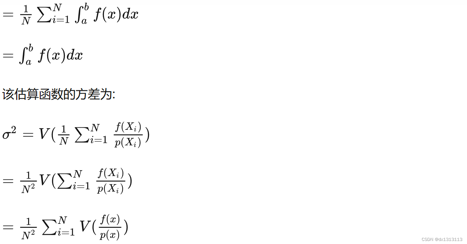 为了求解这个积分,我们在 a到 b上采样 N 个随机样本,将它们加在一起并除以样本总数来取平均。其中