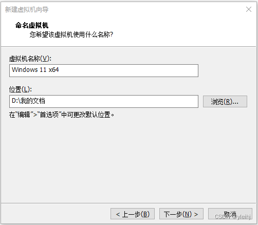 8:给虚拟机起个名字,根据实际情况选择存放的位置。
