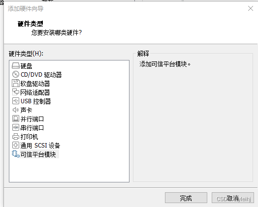 19:选择可信平台模块,点击完成。