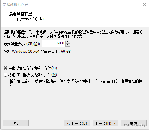9:选择将虚拟机磁盘存储为单个文件,下一步。