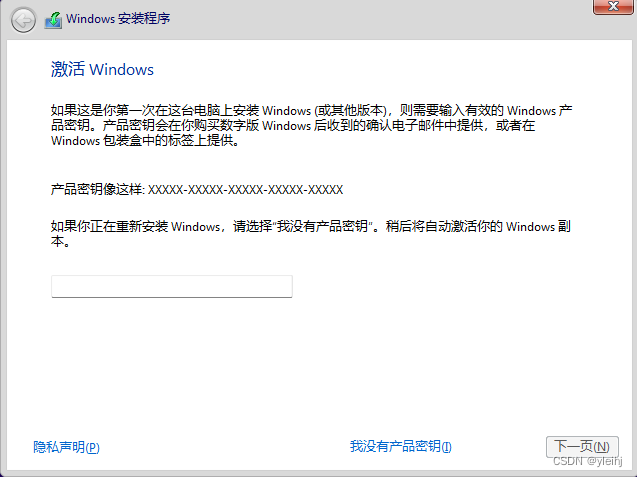 26:之后的过程有跳步,因为和安装其他系统没有什么区别。这里我们选择我没有产品密钥。