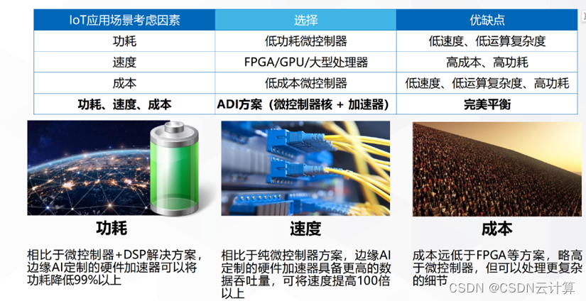 边缘 AI 作为在设备本地端执行的AI,需要使用电池供电,因此我们需在系统功耗、计算速度和设备成本之间取得平衡。