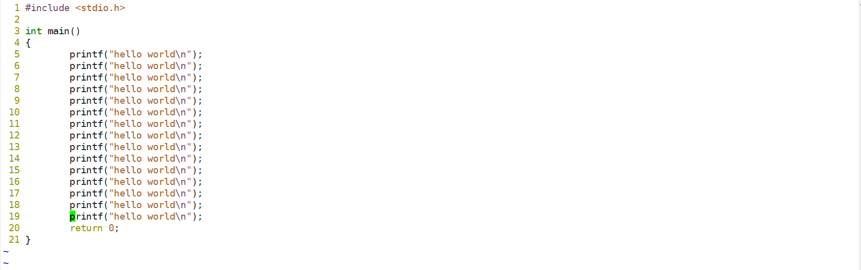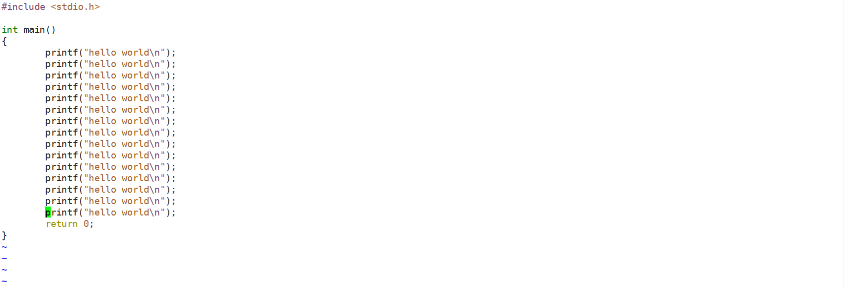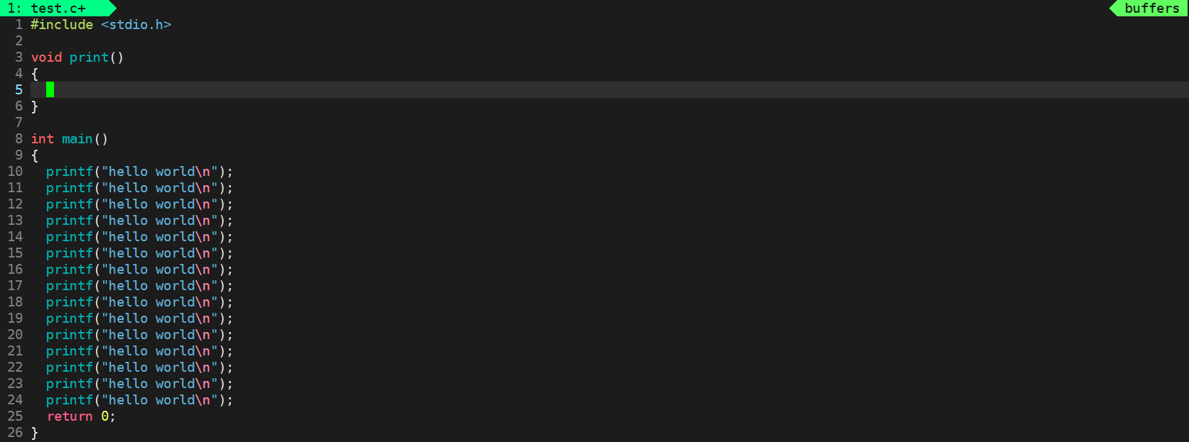 这时我们打印文件 test.c 可以看到文本已经被编辑了。
