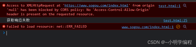 这里我们发现报错了,报错的原因是我们出现了跨域访问。