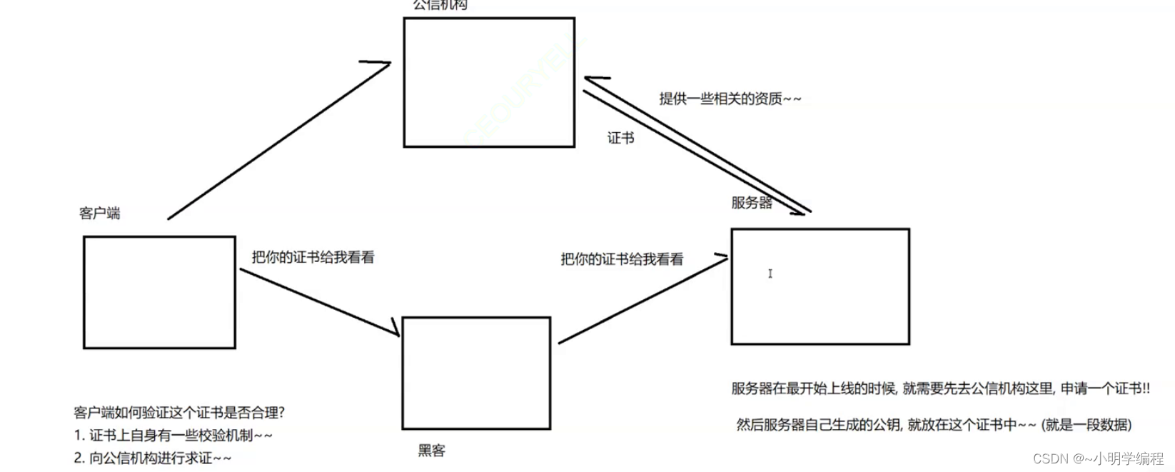 想要解决这个问题我们就得引用第三方的公信部门,对我们发送的数据进行一个验证是不是合法的公钥。
