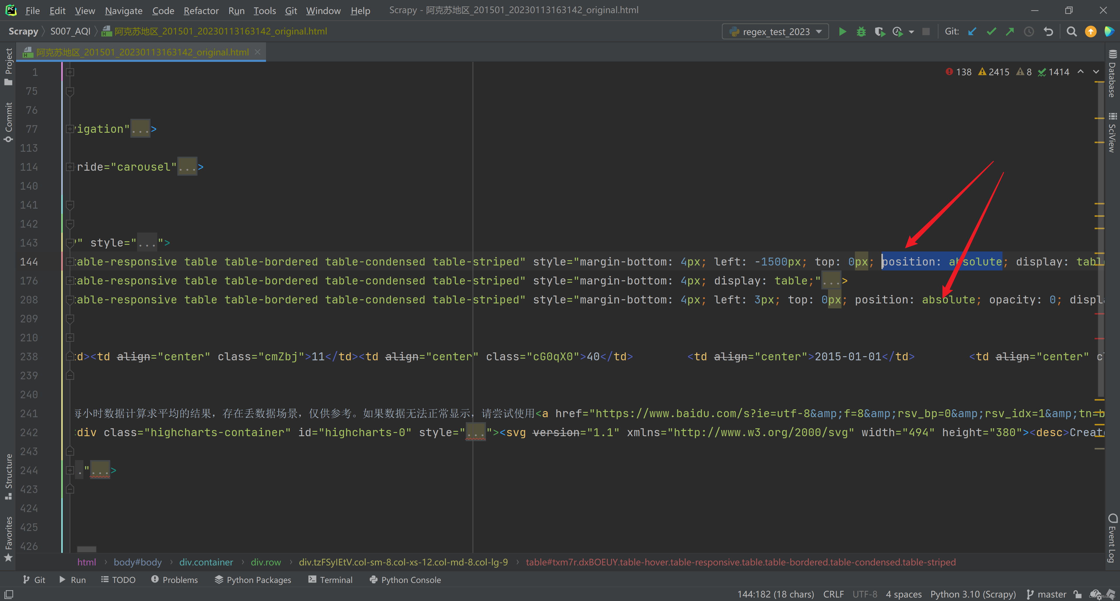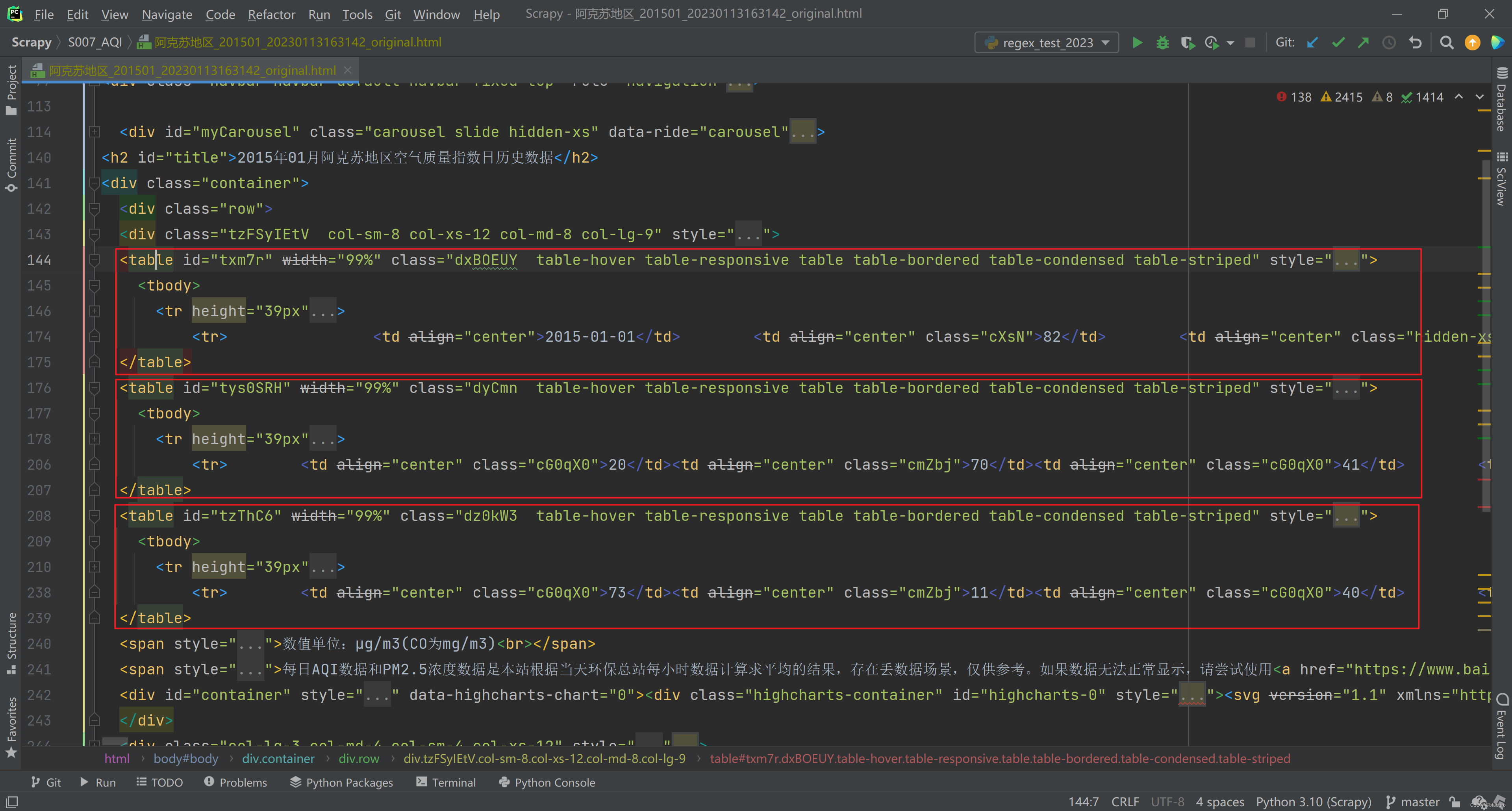 而Selenium 的不同(牛逼)之处是,他提供了1个属性 page_source,这个page_source 就能够拿到渲染后的页面源代码。我们可以把他保存到本地。如下图。可以看到每个Table 都已经填充了数据。