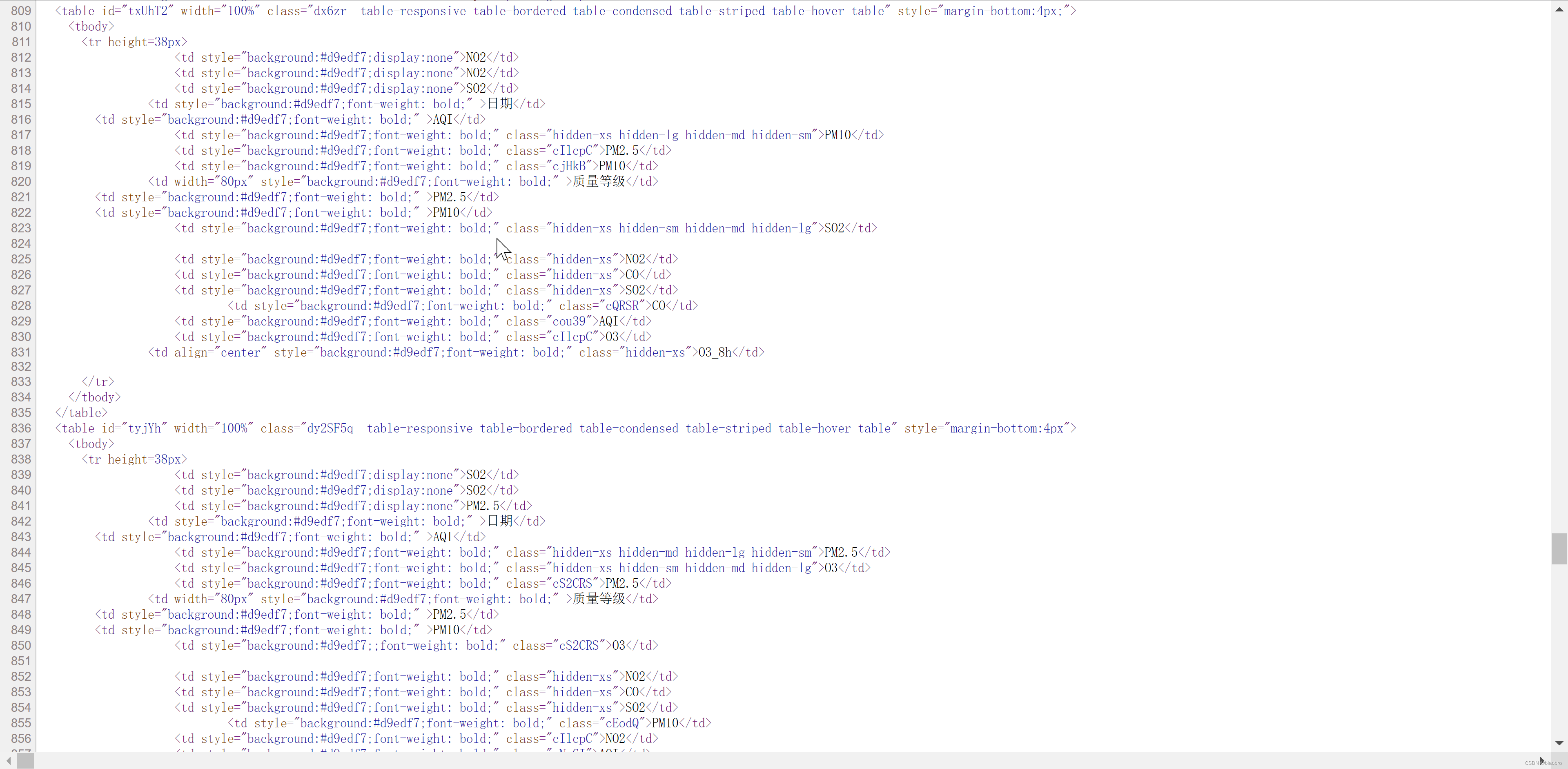 # 最简单的方式就是把 th 替换为 td,这样就不用在 th 里依次判断4种隐藏样式