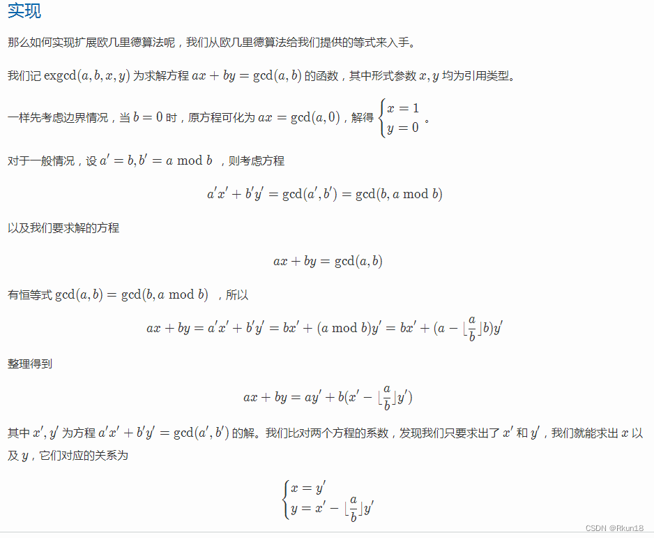 /*** * @param a * @param b (a,b)两个整数* @param x * @param y (x,y)满足 ax+by=gcd(a,b)* @return a b最大公约数 x,y满足条件*/public static int extend_gcd(int a,int b,int x,int y){if(b==0){x=1;y=0;return a;}else {int r=extend_gcd(b,a%b,y,x);y-=x*(a/b);return r;}}