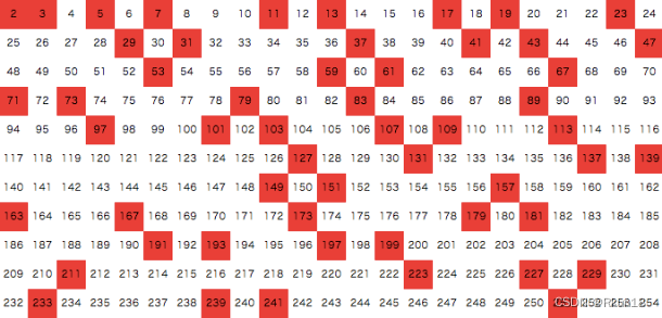 素数筛法是一种用来筛选素数的算法。最简单的素数筛法是埃氏筛法(Sieve of Eratosthenes)。该算法的基本思想是:首先将数字从小到大列出来,然后用2去筛,将2留下,其他的数都删去;再用下一个素数,也就是3筛,将3留下,其他的数都删去;接下来用下一个素数5筛,首先将5×2=10以后的数删去,再将5×3=15以后的数删去,接下来用下一个素数7筛,不断重复下去......直到筛完为止。这样得到的就是素数。