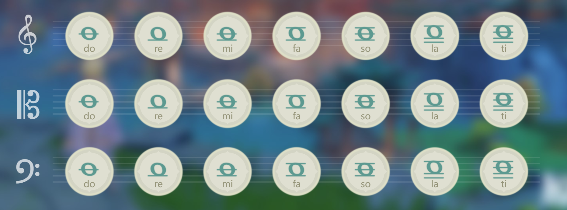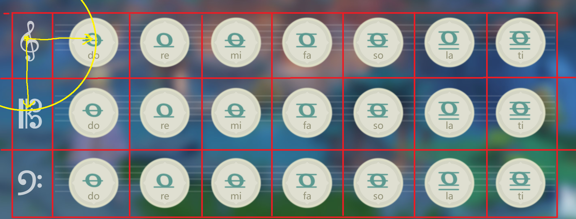 简单分析一下:它有低中高(分别对应下中上)三行,每一行都是do-ti。所以比如识别do的话会识别出三个位置,那只需要根据垂直坐标大小进行区分即可。