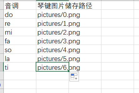 然后制作一份音调和对应琴键图存储路径的配置表: