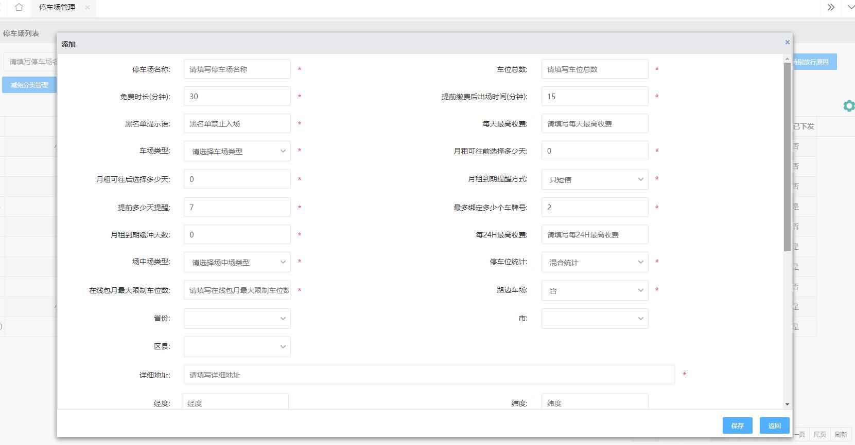 9 | 车场管理 | 车场管理 | 管理停车场,车位,特殊放行分类 |