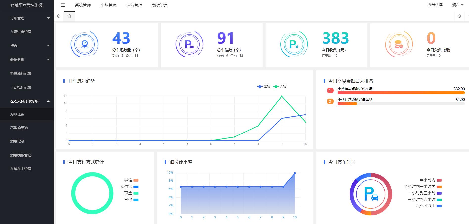 Iparking是一款基于springBoot的停车收费管理系统,支持封闭车场和路边车场,支持微信支付宝多种支付渠道,支持多种硬件,涵盖了停车场管理系统的所有基础功能。