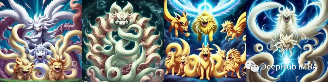 defmakePokemonFromPokedex(ver,nPokemon):#Loop over nPokemons to get the descritptions and generate images for each#poke_id = 1forpoke_idinrange(1, nPokemon+1, 1):#print(poke_id)#Specify which Pokemon we want to query using its ID numberpokemon=pypokedex.get(dex=poke_id)#print(pokemon)#This is the name of the Pokemon we are queryingpoke_name=pokemon.name#This is the PokeDex desciption for the current Pokemonyellow_description=pokemon.get_descriptions()[ver]#This is the prompt I'll feed to the AI prompt=poke_name+" "+yellow_description#print(prompt)remove_safety=Falsenum_images=4ifremove_safety:negative_prompt=Noneelse:negative_prompt="nude, naked"images=pipe(prompt,height=image_length,width=image_length,num_inference_steps=25,guidance_scale=9,num_images_per_prompt=num_images,negative_prompt=negative_prompt,).imagesfname='poke_'+str(poke_id)get_concat_h_multi_blank(images).save(fname+'.jpg')
