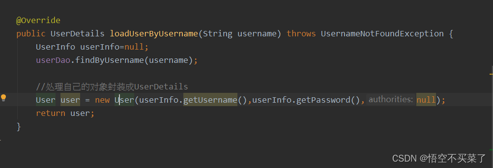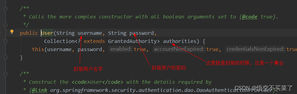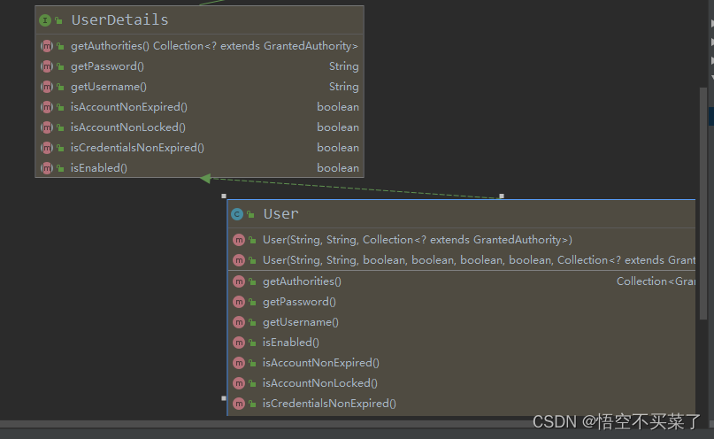 因为Spring-security框架返回的对象是去找UserDetails,也就是它的接口实现对象