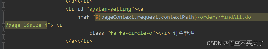 前端页面需要修改两个页面,一个是导航栏,订单查询的地方,需要传入页码与每一页显示的条路,否则会报错