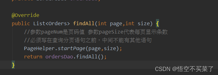 当然了上面的pageNum与pageSize是我们从前端传过来的,我们需要通过这个fandAll方法传入